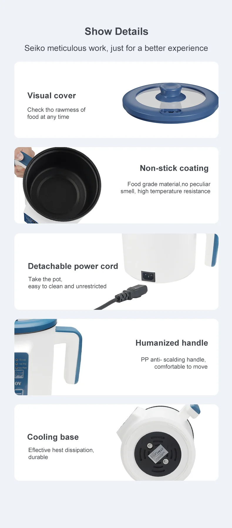 2. Easy to operate electric rice cooker: It only takes two steps to cook, add rice and water, and then click Start.